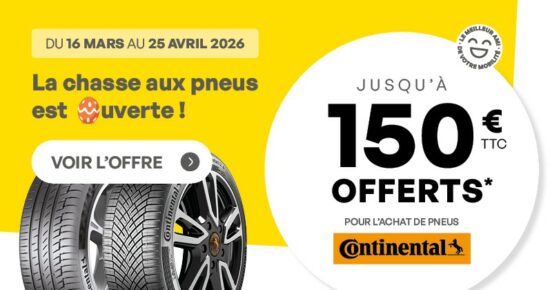 Du 1er septembre au 31 octobre 2025, profitez du jeu-concours de la marque Uniroyal ! Bénéficiez de vos pneus 100% remboursés* valable […]
