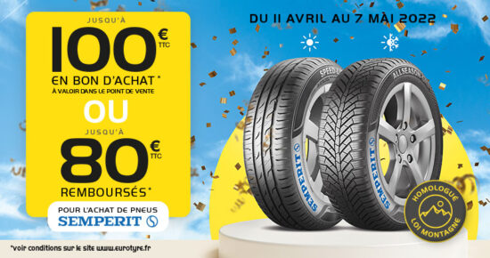 Du 11 Avril au 7 Mai 2022, profitez de l’offre Semperit jusqu’à 100€ en bon d’achat* ou jusqu’à 80€* remboursés […]
