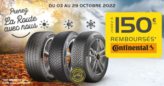Du 03 octobre au 29 octobre 2022, jusqu’à 150€ remboursés* pour l’achat de pneumatiques de marque Continental Été, Hiver ou […]