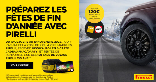 Du 14 Mars au 22 Avril 2022 pour l’achat et la pose de 2 ou 4 pneumatiques Pirelli toutes gammes […]